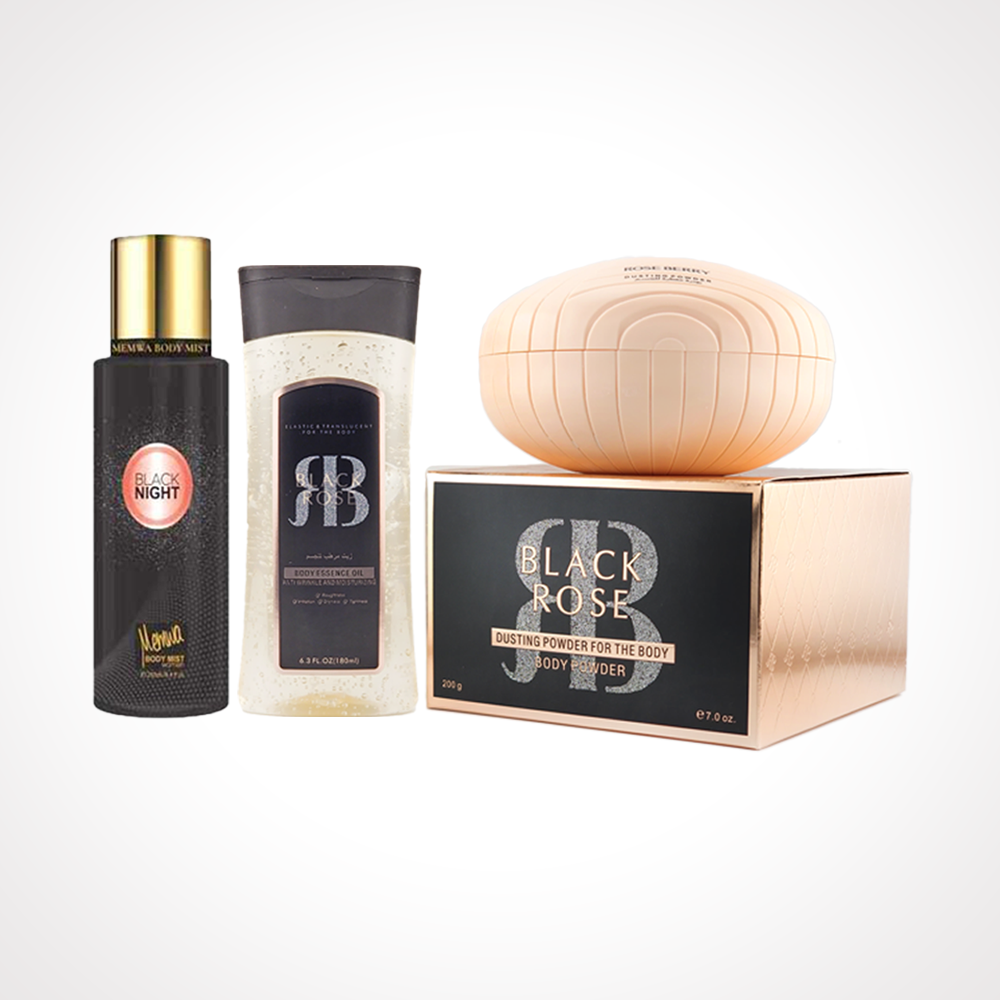 لمسة واحدة من بودرة بلاك روز والزيت المعطر ومعطر الجسم تكفي لصنع هالة أنثوية فاخرة تترك أثرًا جذابًا طوال اليوم.