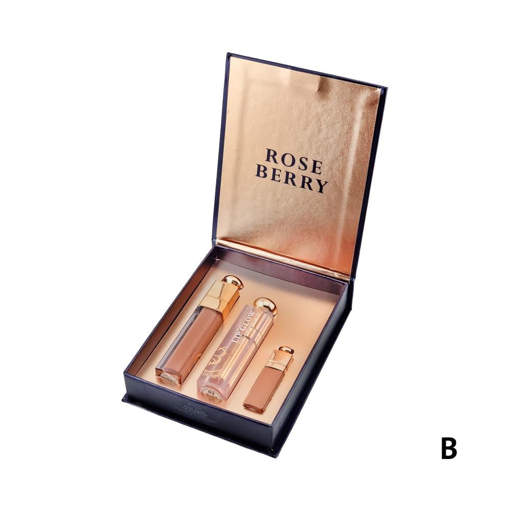 اجعلي شفتيك تنبض بالجمال مع طقم الشفاه 3 قطع من روز بيري.
