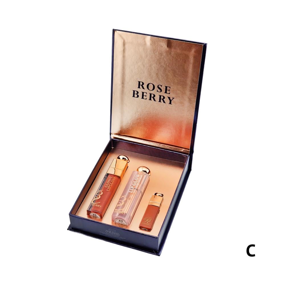 اجعلي شفتيك تنبض بالجمال مع طقم الشفاه 3 قطع من روز بيري.