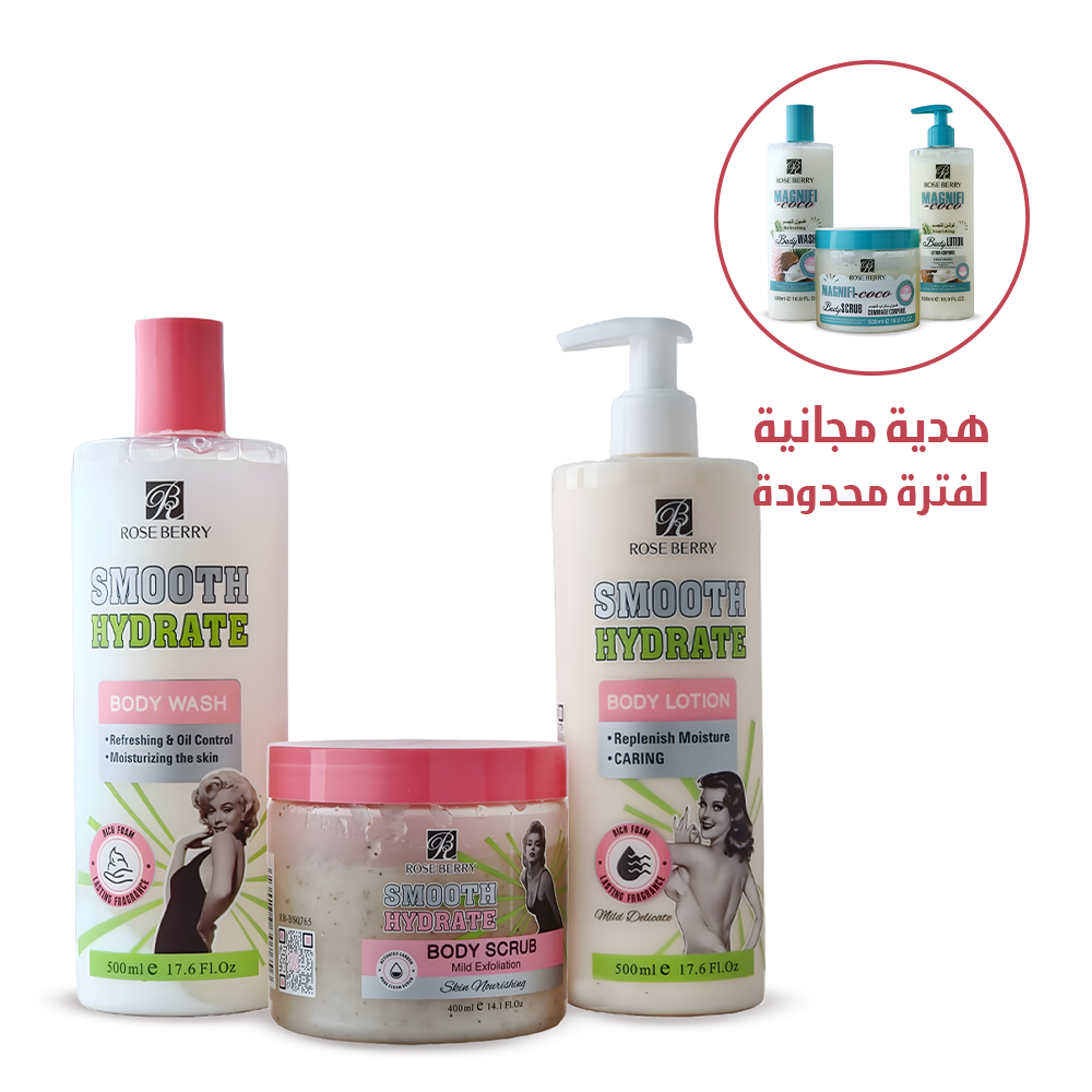 The Rose Berry Body Care Set includes Body Lotion, Body Scrub, and Body Wash, designed to provide a comprehensive skincare experience. This set contains natural ingredients that help deeply cleanse, moisturize, and nourish the skin.